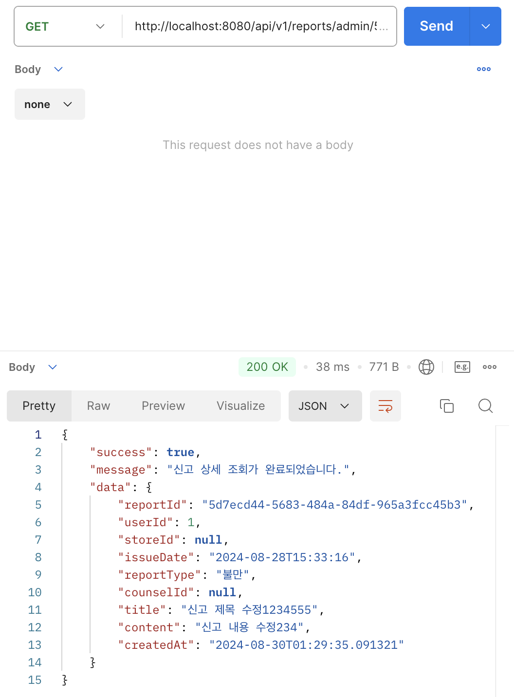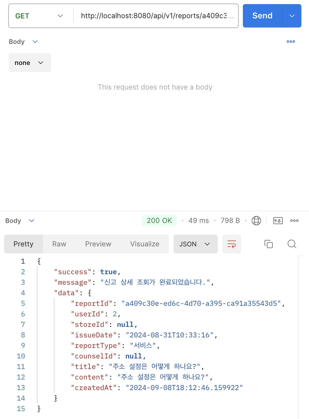 - 문의 상세 조회: GET/ api/v1/reports/{reportId}