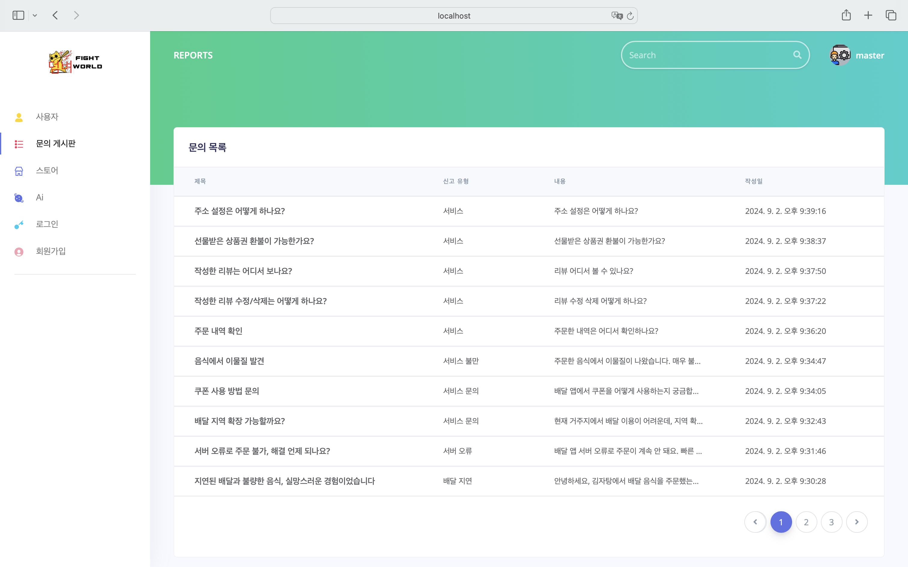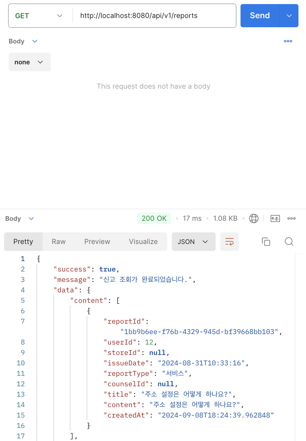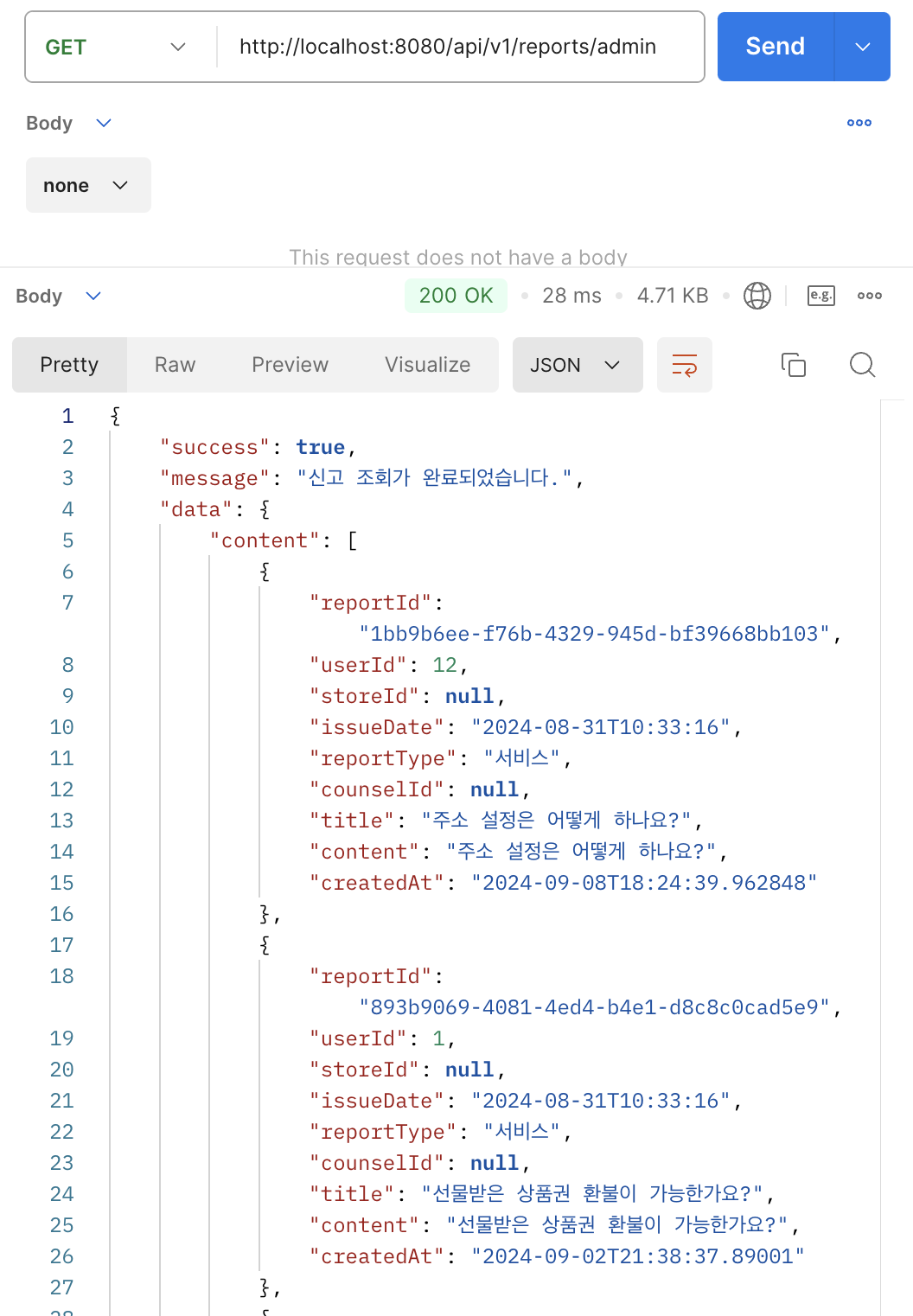- 문의 목록 조회(관리자): GET/ api/v1/reports/admin