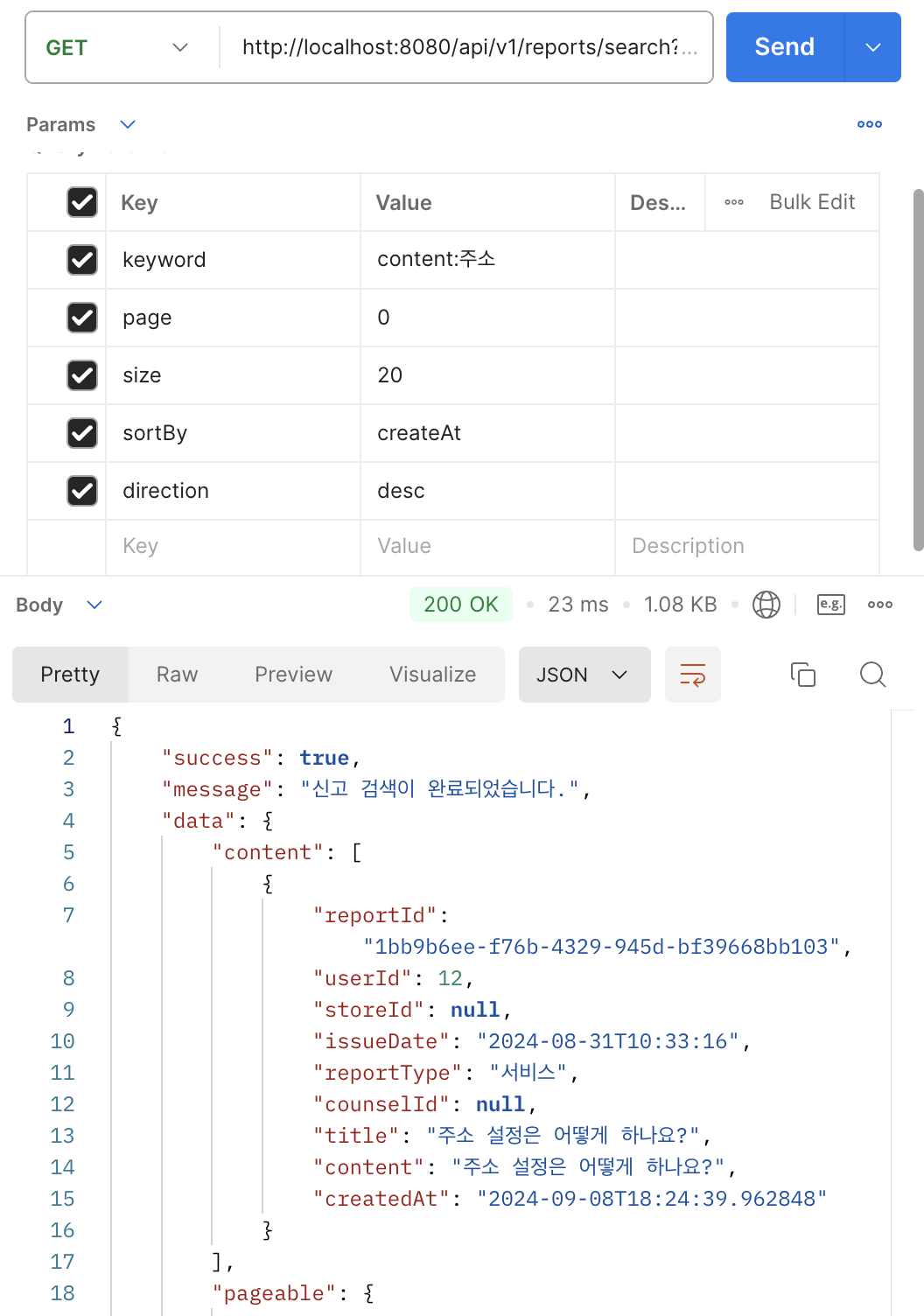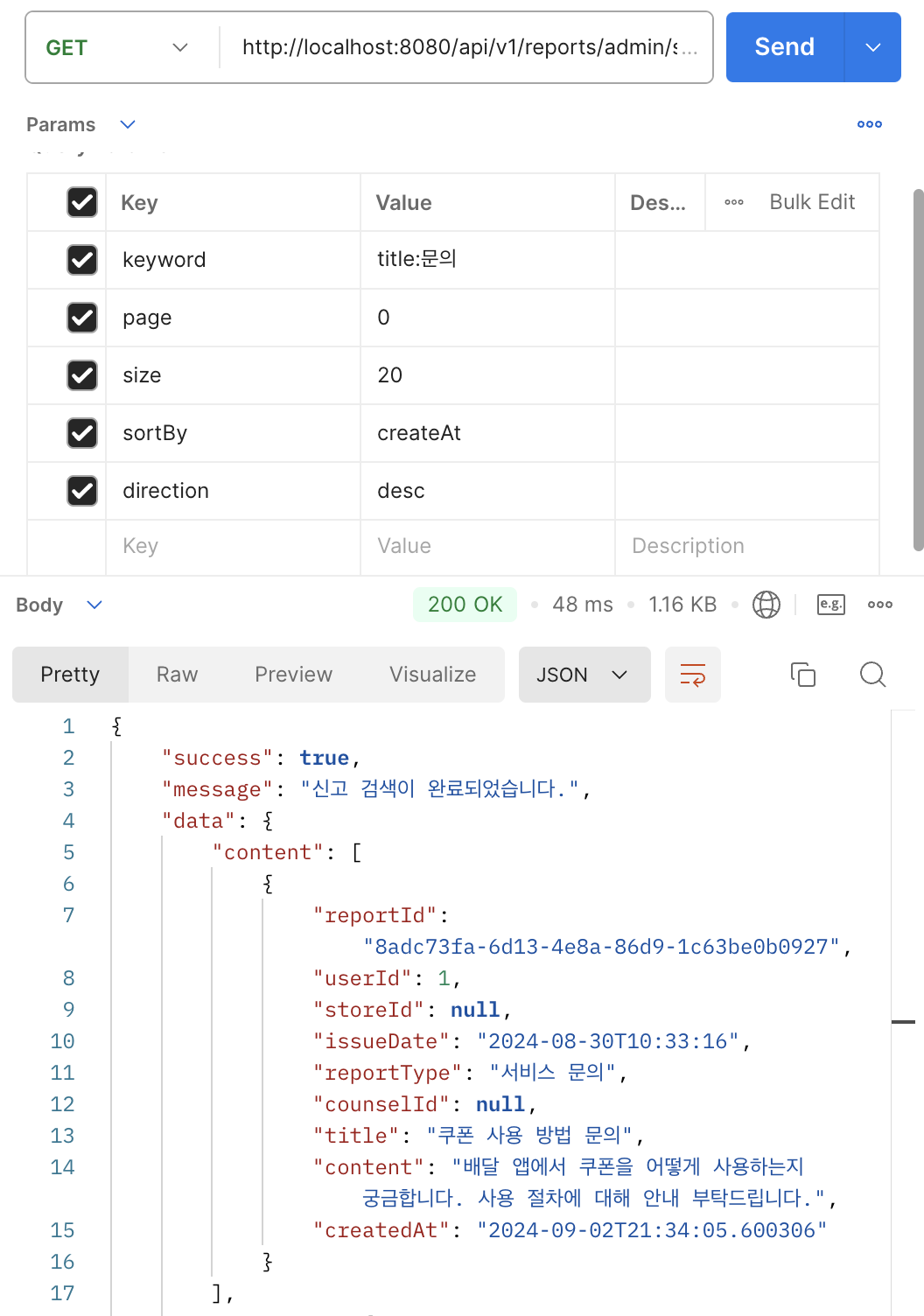 - 문의 검색(관리자): GET/ api/v1/reports/admin/search