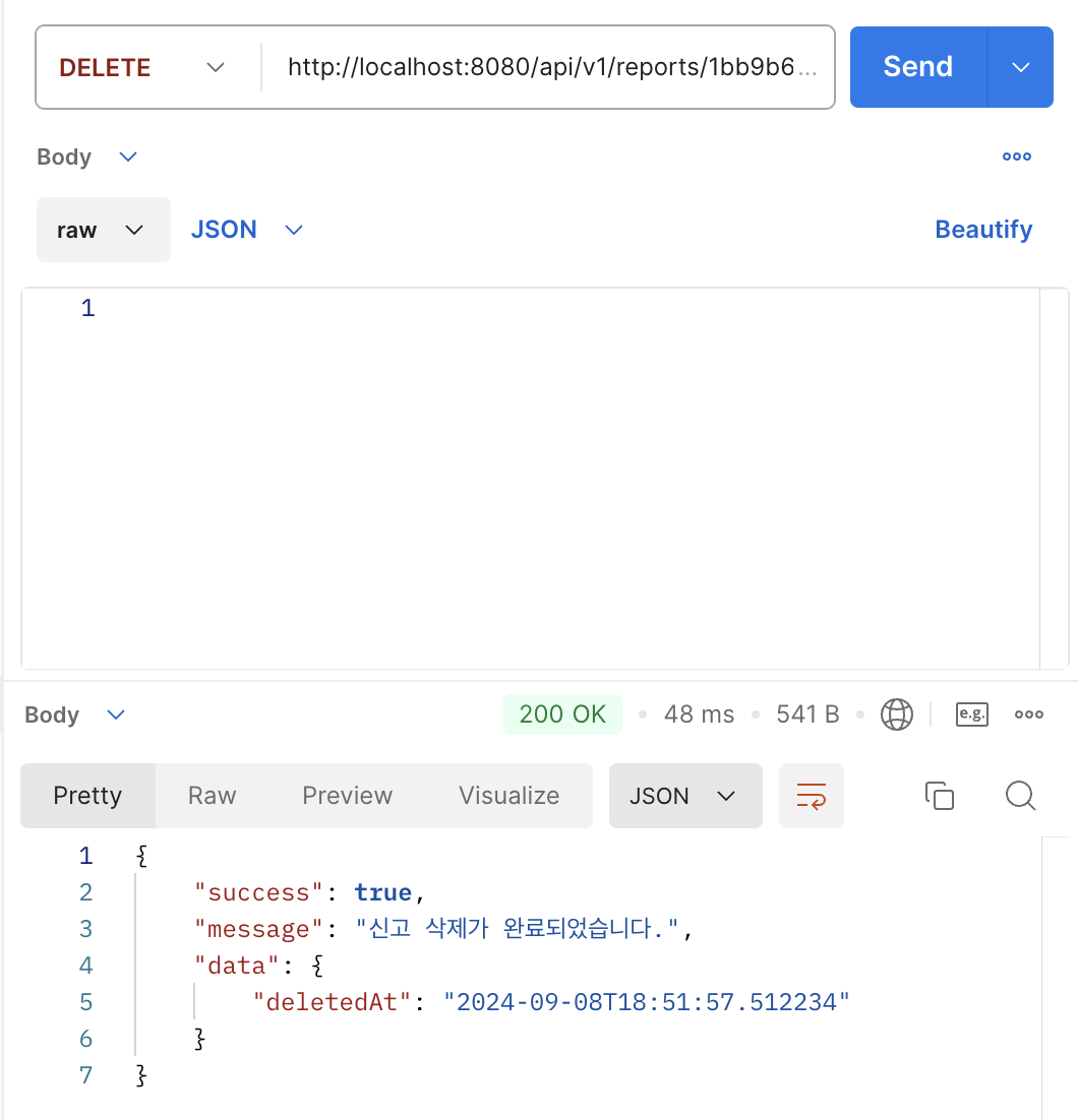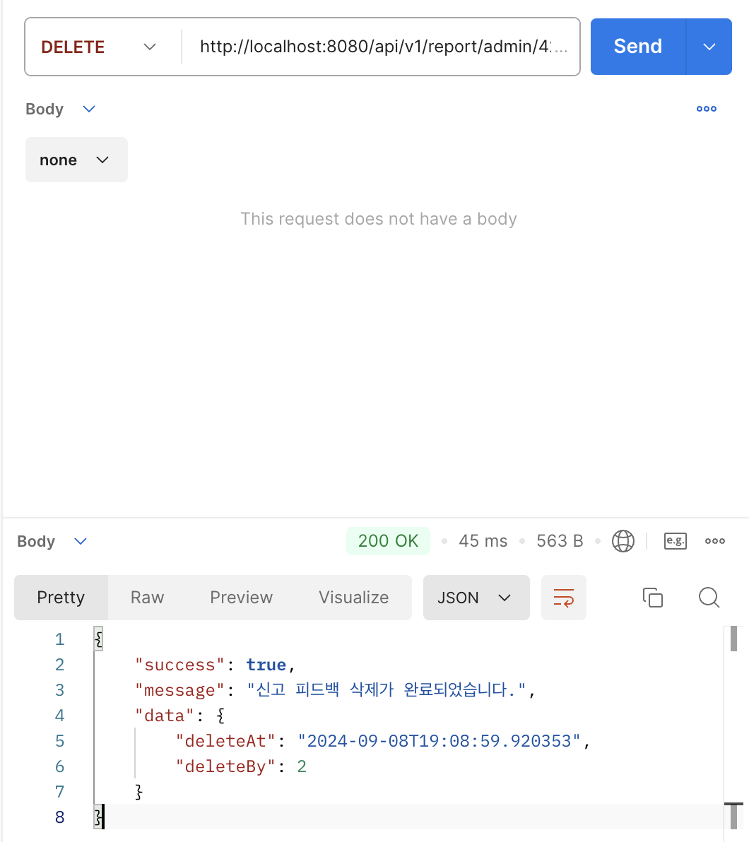 - 문의 삭제: DELETE/ api/v1/reports/{reportId}
