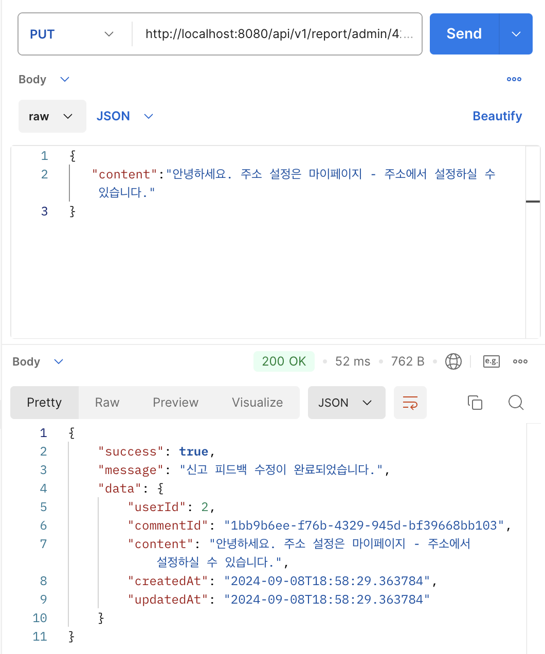 - 문의 답변 수정: PUT/ api/v1/report/admin/{reportCommentId}