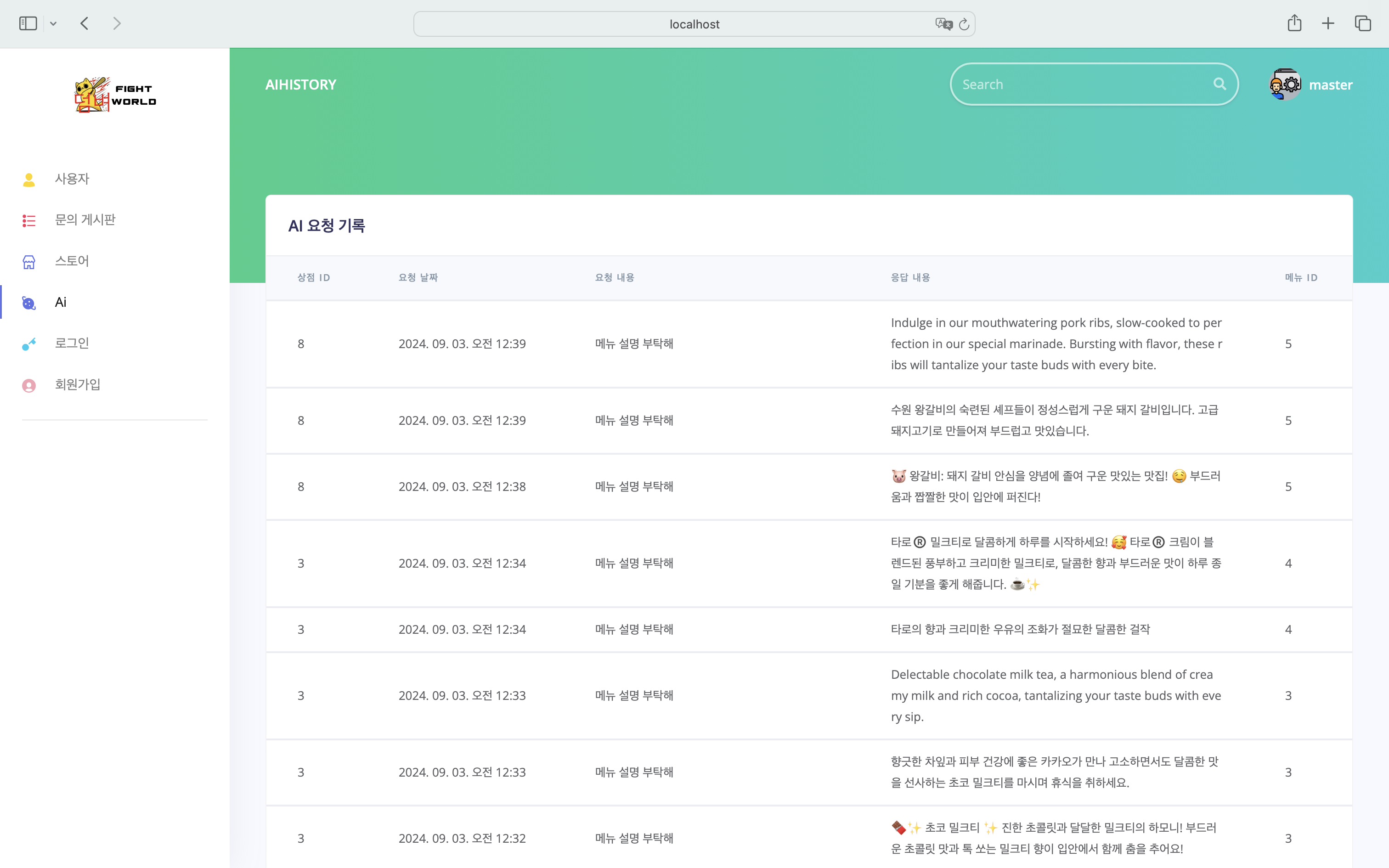 - 가게 사장님이 AI API를 활용해 상품 설명을 요청한 내역을 조회할 수 있고, 관리자만 내역을 삭제할
