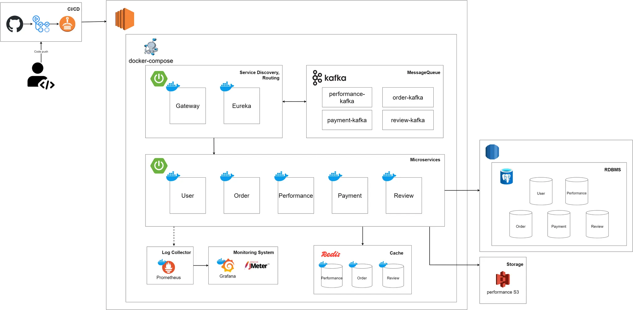 MSA 구조의 예매 시스템이며, 특정 시간에 사용자의 요청이 몰리는 온라인 예매 시스템에서 대규모 트래픽을