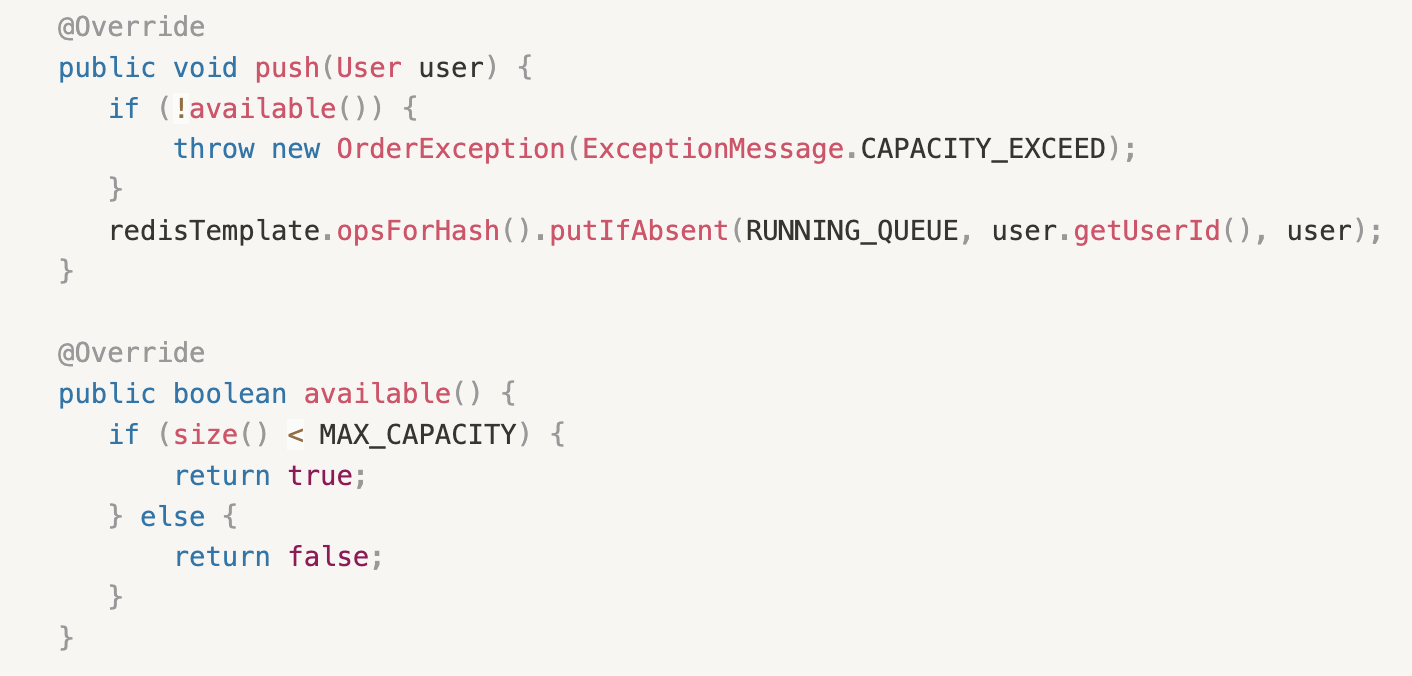 Redis의 SET 자료구조를 사용하여 현재 주문을 진행 할 수 있는 사용자들을 관리